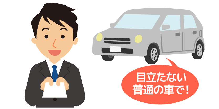 人目に付きにくい一般車両で伺います。ご安心ください。 |
